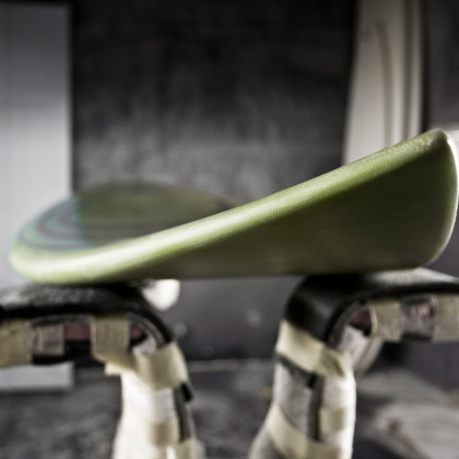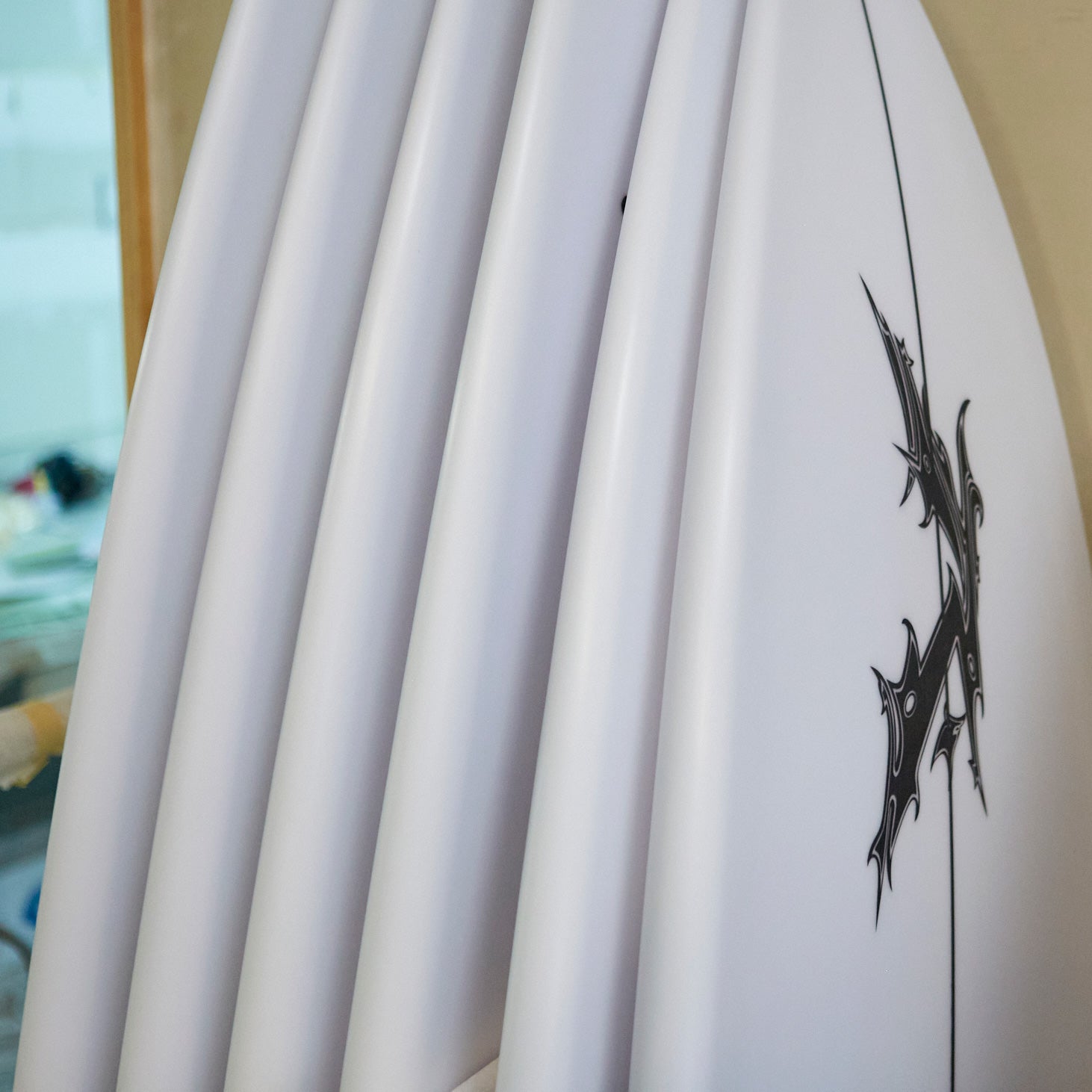 Basically, there are two types of rails: 50/50 rails (which derive from older, pre-shortboard design styles and are found more on longboards) and “down-turned” rails, which can be found on almost all modern surfboards. A 50/50 rail is shaped the way it sounds, meaning the apex, or mid-point, of the curve is in the middle of the rail, creating an egg-like shape that sits high on the water’s surface. Because this type of rail lacks a sharp edge on the bottom, water can more freely flow out from the bottom of the board as you plane down the face of the wave. This buoyancy and a lack of edge make a board with rounder (50/50) rails much harder to maneuver. A “down-turned” rail is probably what you are used to seeing, as it is the popular choice on most any surfboard today. It begins, essentially, as a 50/50 rail from the nose then at about three-quarters down the rail develops a sharper lower edge to accommodate the flat bottom of the tail area. This sharp edge holds through into the tail and helps to capture the flow of water from the nose and keep it underneath the board so that it creates lift as it runs against the fins in a tighter manner. Down-turned rails are so popular because of the extra maneuverability they give a surfboard. They’re stable yet necessary for vertical, modern surfing.