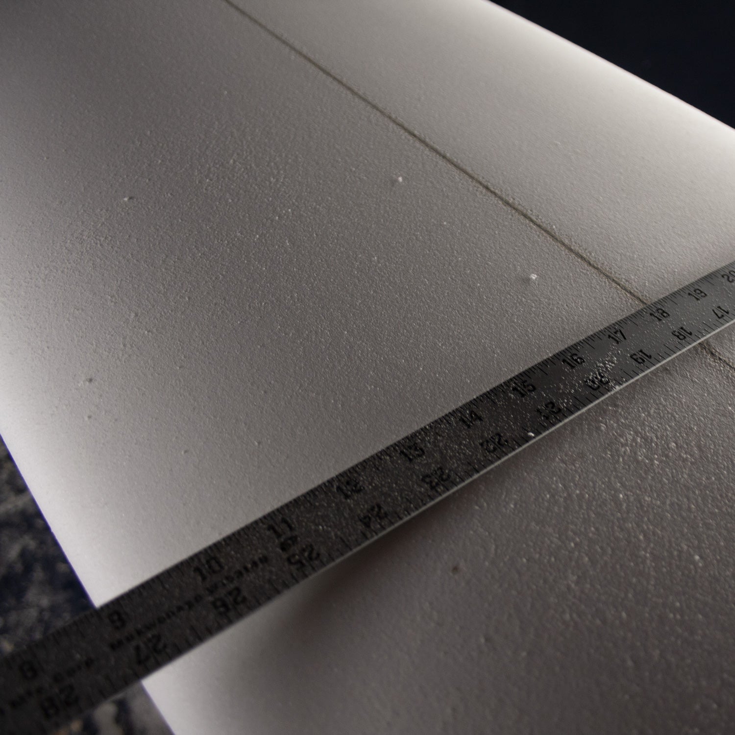 To find the wide point on a surfboard simply take a ruler or measuring tape and stretch it across the deck, slide the ruler down perpendicular to the stringer until you find the area of the board that has the greatest width across.